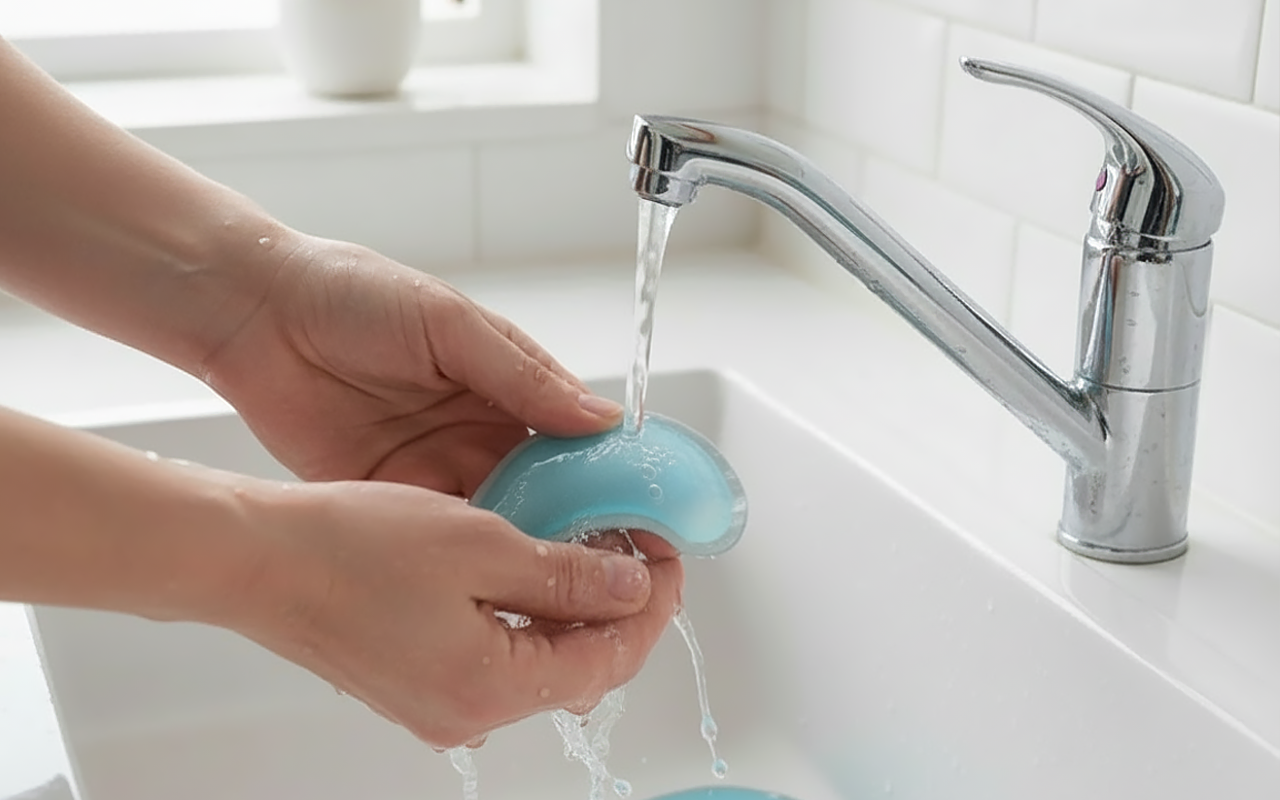 Muito feliz por poder apenas enxaguar e reutilizar, sem desperdício! O formato é perfeito e eles são agradáveis na pele.