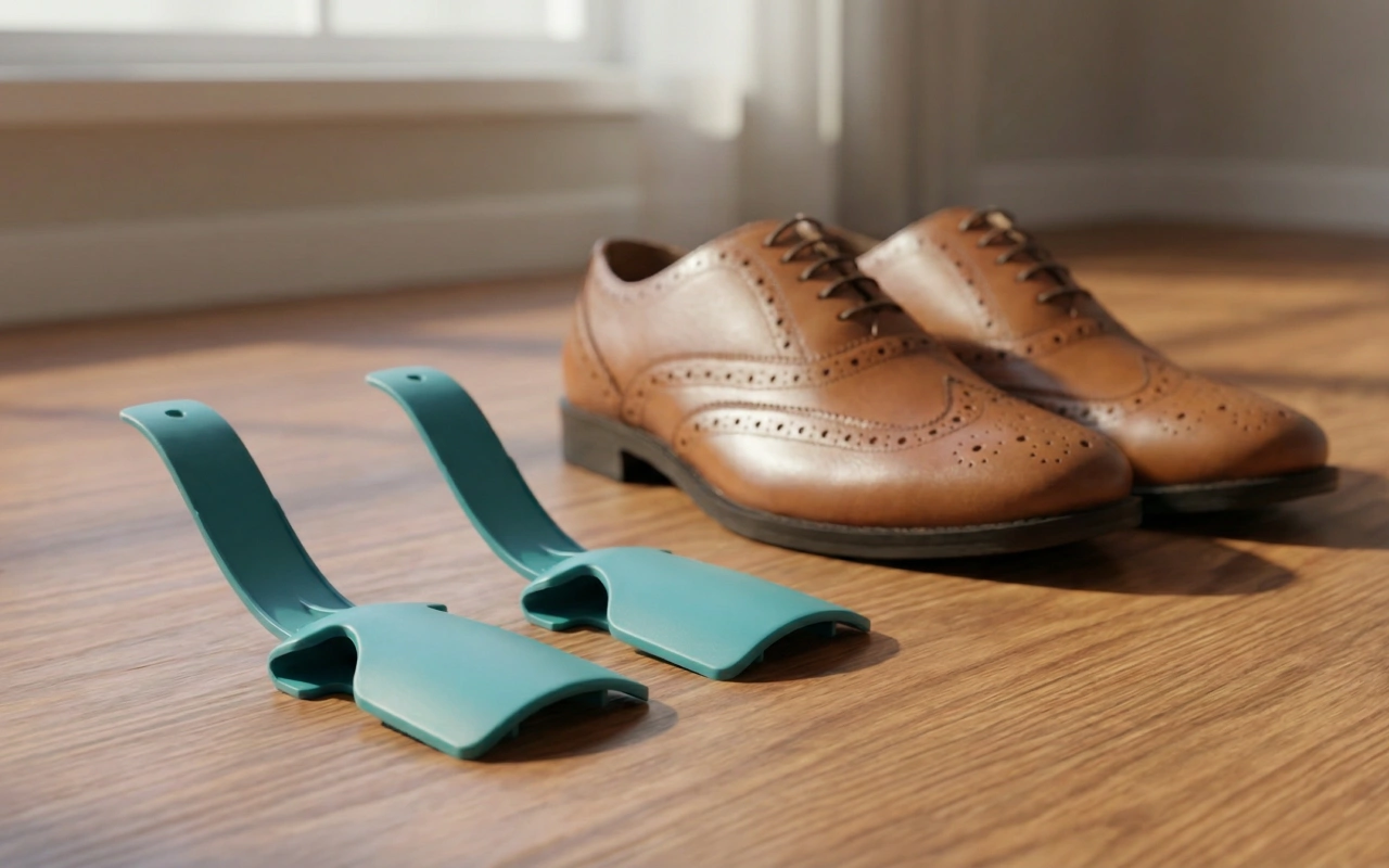 Estava farto de lutar com ténis apertados. Este ajudante guia o meu calcanhar diretamente para dentro e impede que a gola do calcanhar dobre, por isso os sapatos continuam com aspeto de novos.