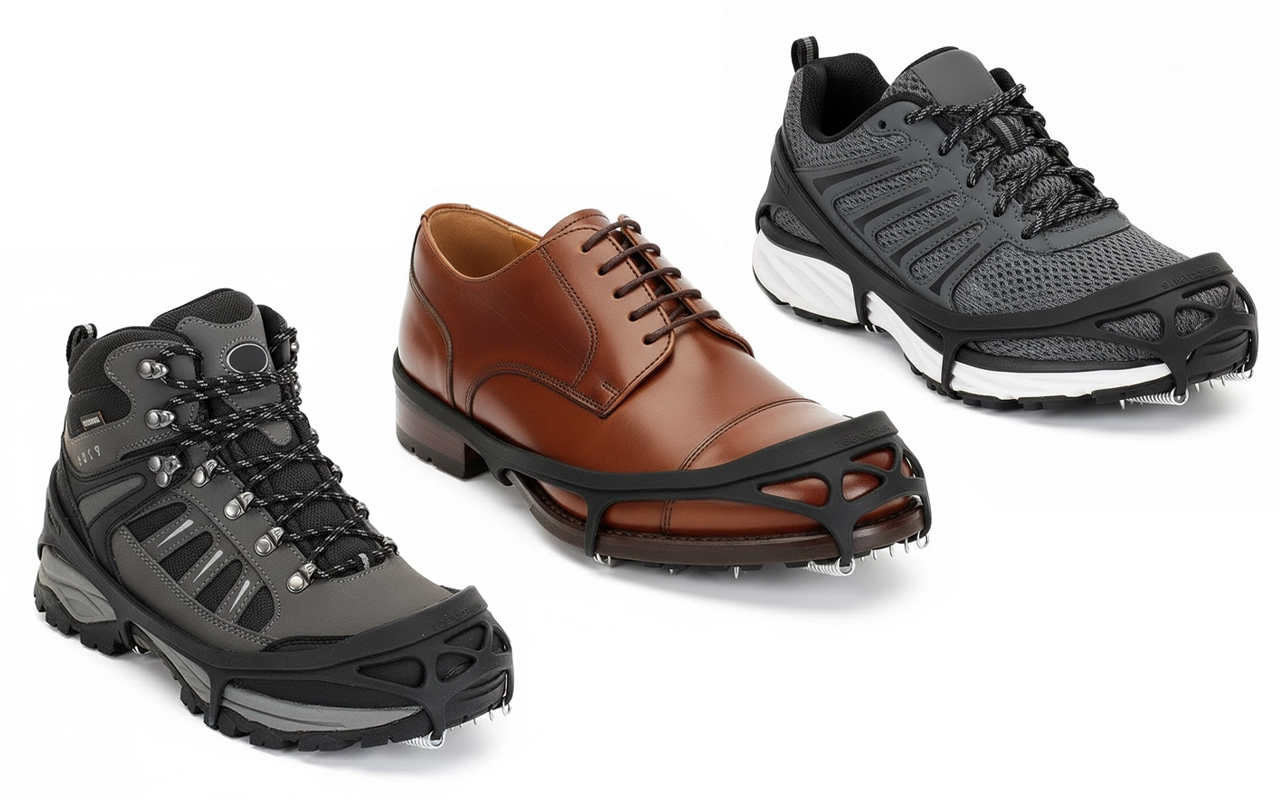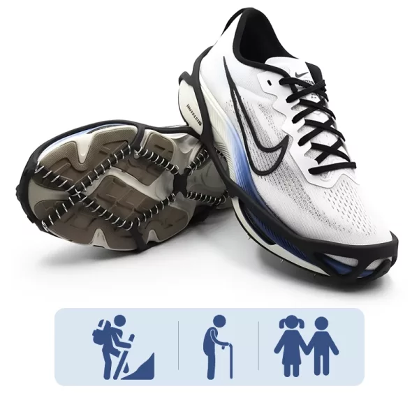 Capas flexíveis se adaptam a tênis, sapatos de caminhada ou botas. Fácil de usar para todas as idades, tanto homens quanto mulheres.