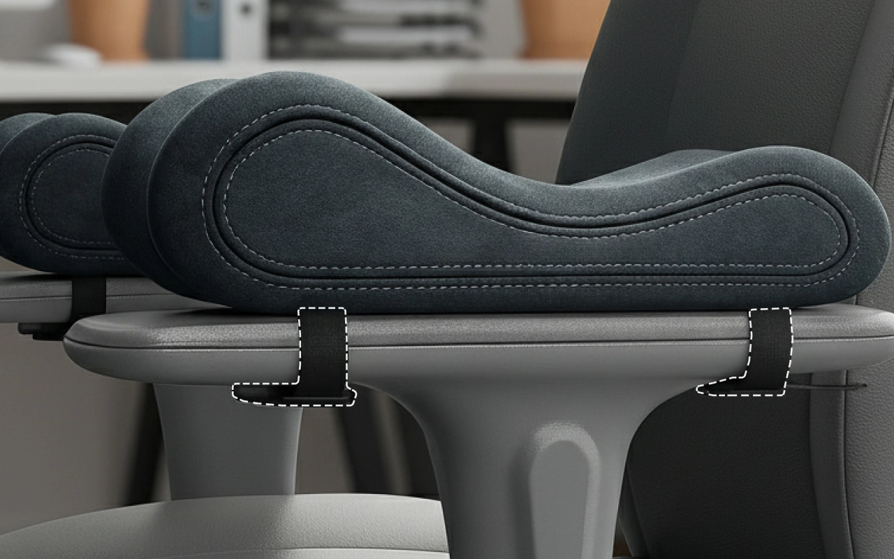 Essas almofadas de apoio de braço são incríveis! Meus cotovelos não doem mais quando fico horas no computador. Fácil de instalar, e elas ficam no lugar o dia todo.