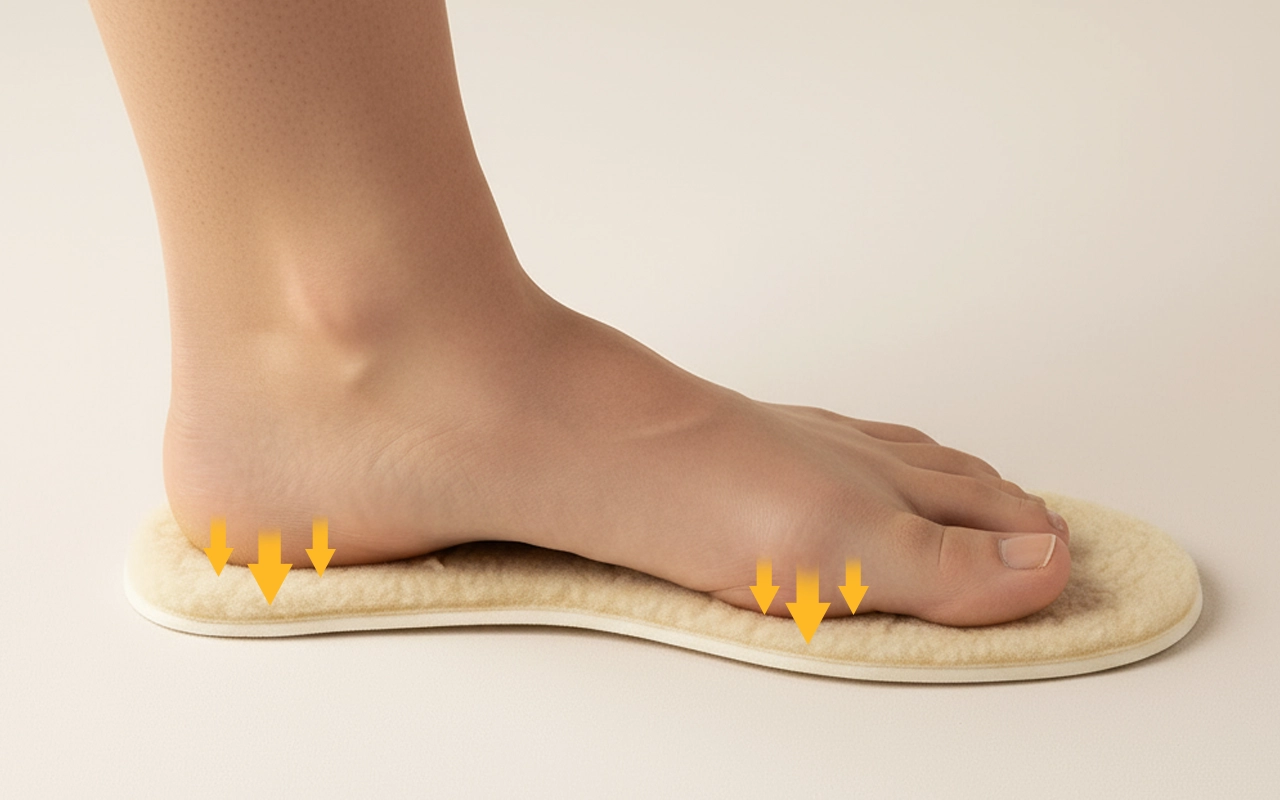 A almofada suave reduz a pressão e mantém os pés relaxados. Cada passo fica mais macio, ajudando a evitar dores durante o uso prolongado.