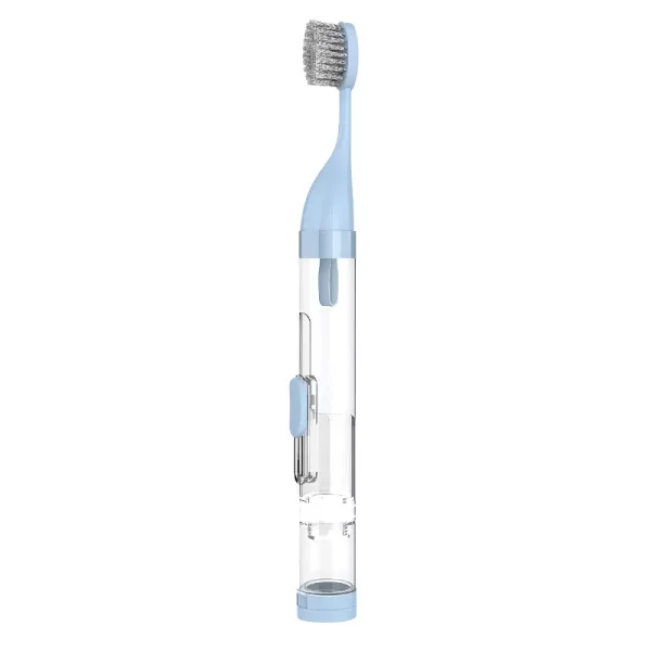 Adoro poder escovar meus dentes em qualquer lugar agora! Cabe perfeitamente na minha bolsa. Não precisei me preocupar em achar pasta de dentes. Perfeito para uso diário.