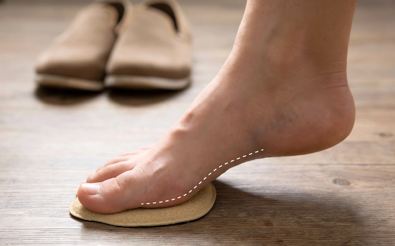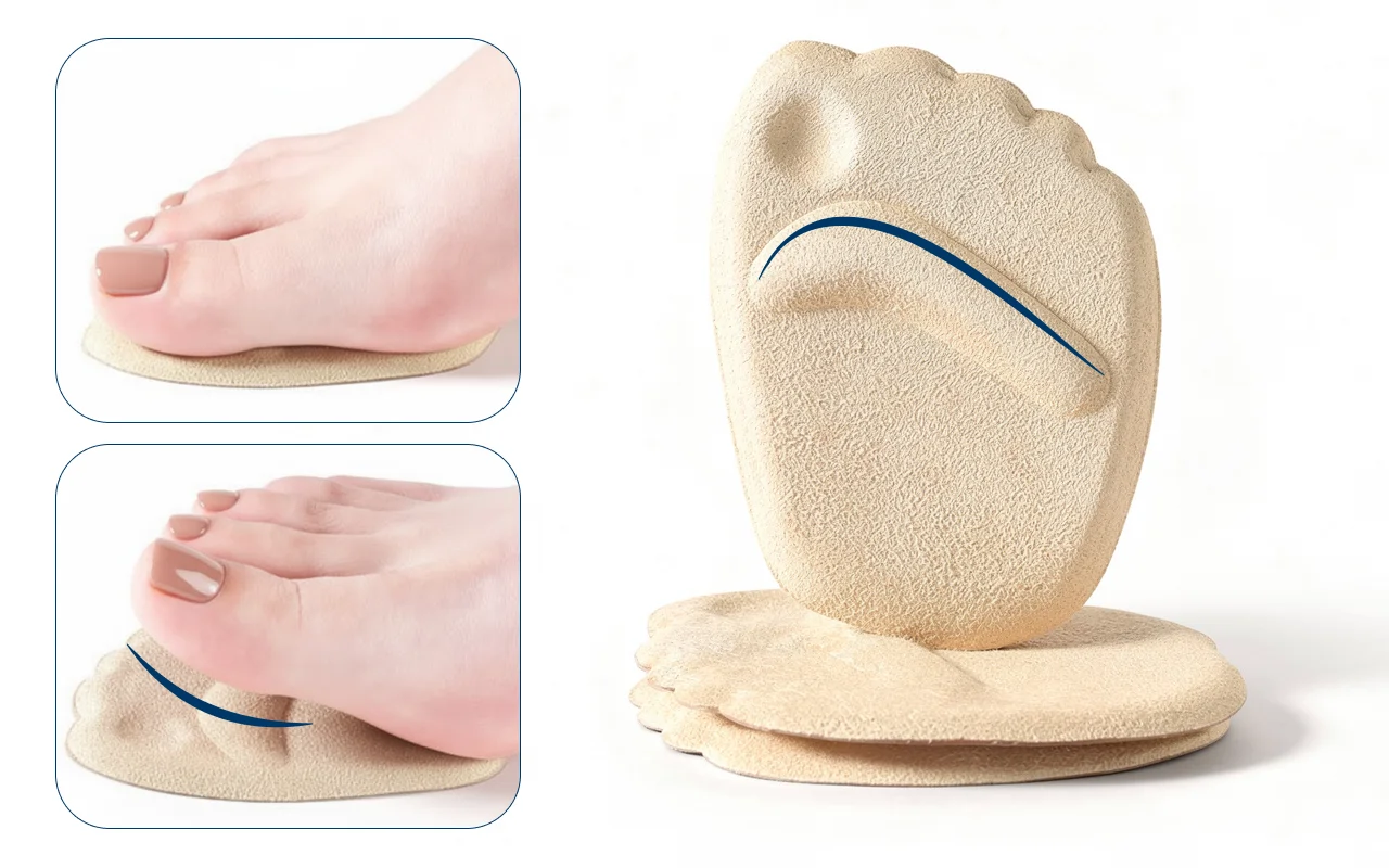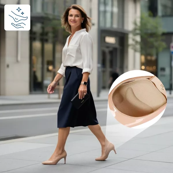 A almofada suave acalma os pés doloridos após horas de uso. Ajuda a aliviar o desconforto causado por joanetes, calos e calosidades.