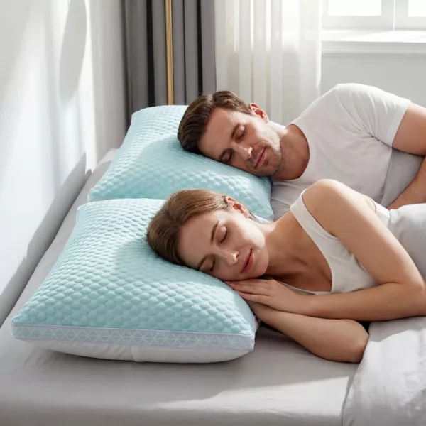 Meu marido sente muito calor enquanto dorme. Esses travesseiros mantêm a cabeça dele mais fresca e ele se mexe bem menos, o que significa que eu finalmente também durmo profundamente.