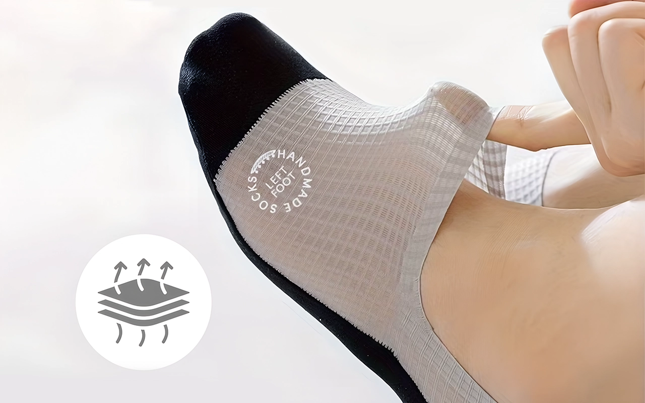 A malha ventilada evita que o suor se acumule rapidamente. Sinta-se confiante sabendo que seus pés permanecem sempre secos.