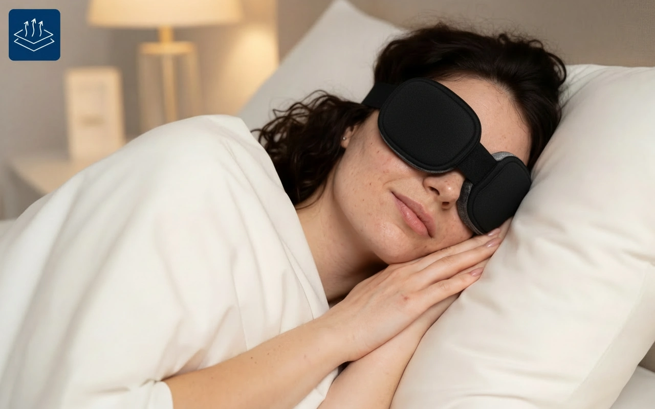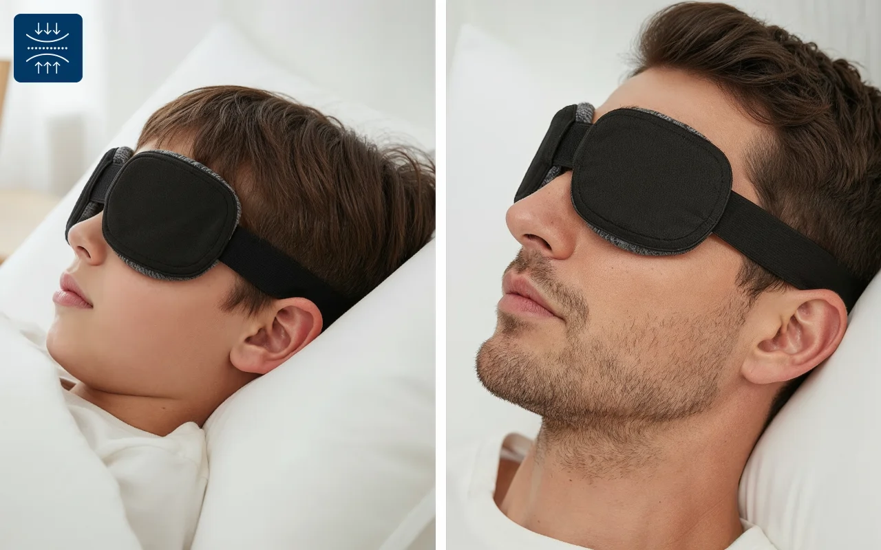 O formato ajustável adapta-se a todos os rostos e tamanhos de cabeça. Não há escorregões ou apertos, apenas suporte suave durante toda a noite.