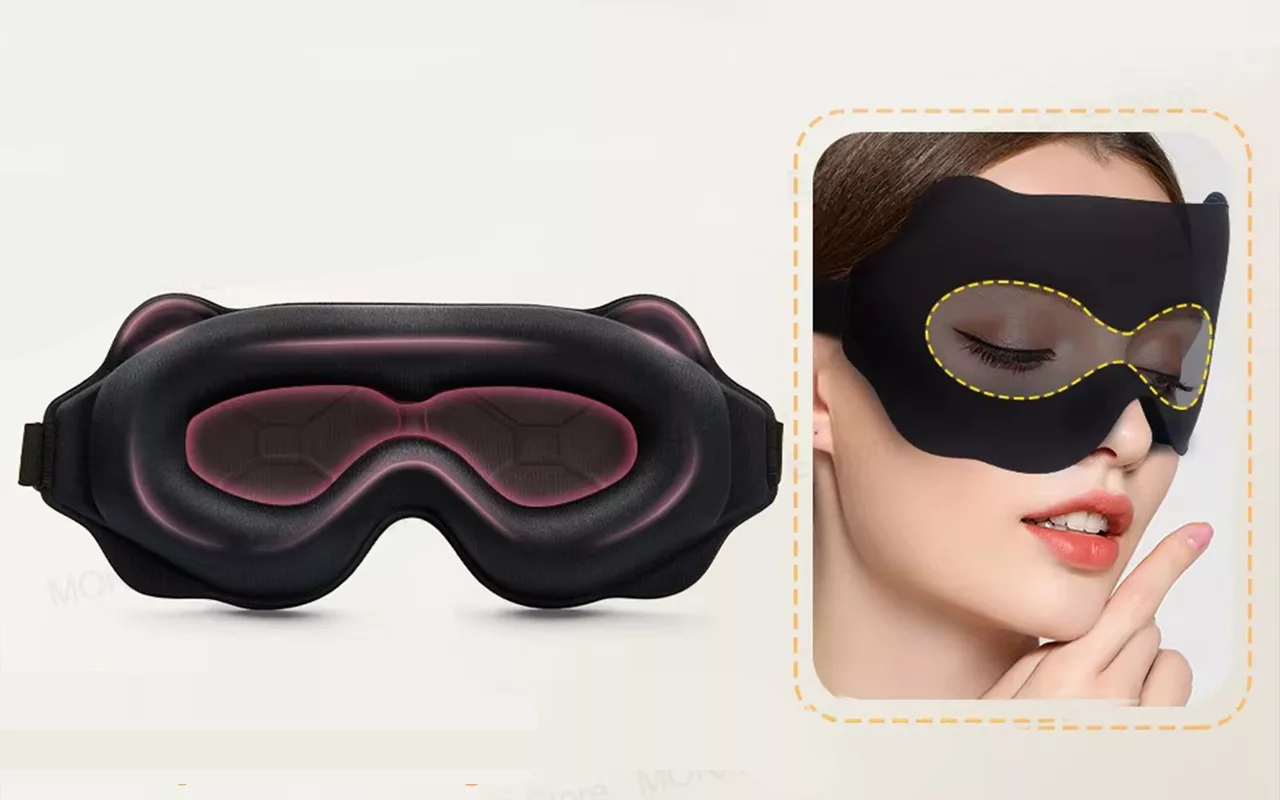A máscara de dormir Orotrex evita contato com os cílios ou pressão nas pálpebras.