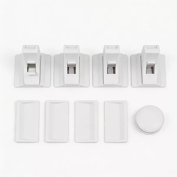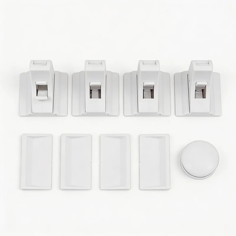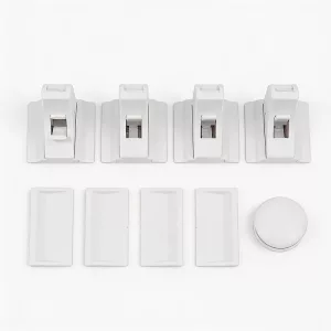 Instale cada trava em apenas alguns minutos. O adesivo forte mantém cada peça firmemente no lugar sem deixar marcas.