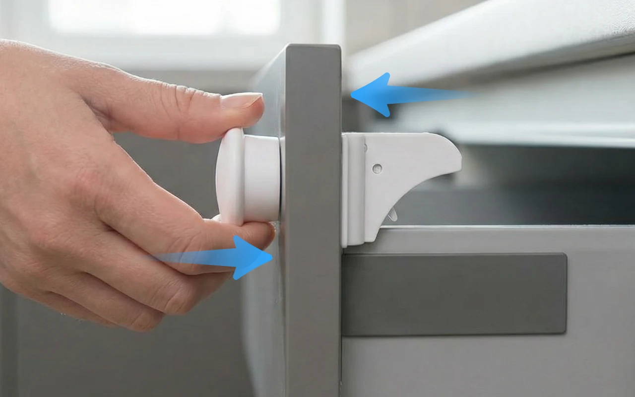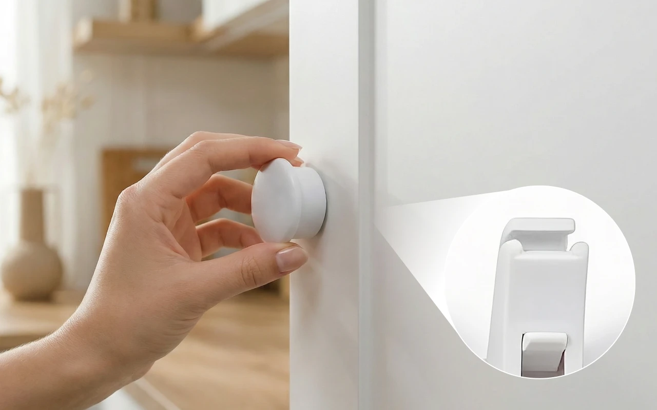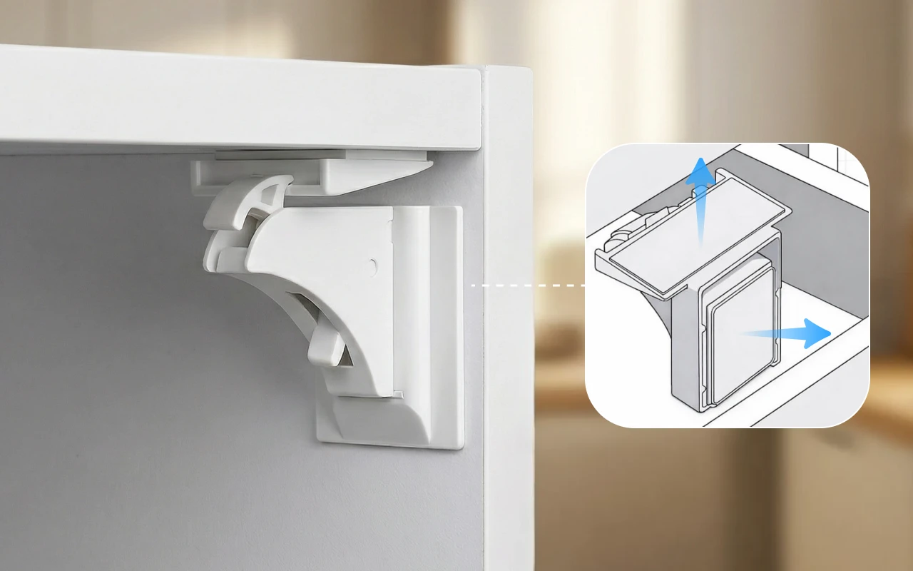 Mãzinhas curiosas exploram rapidamente e acidentes acontecem num piscar de olhos. As travas magnéticas de segurança Ortorex mantêm suas gavetas e armários bem fechados. Nenhuma ferramenta ou furo é necessário para a instalação em qualquer lugar da casa. O design invisível e inteligente mantém os cômodos organizados e bonitos. Cada trava oferece tranquilidade perto de crianças curiosas.