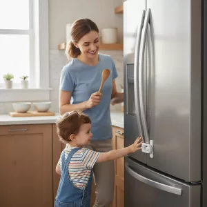 Instalei este cadeado para geladeira depois que meu filho pequeno espalhou iogurte por toda parte. Adere bem, abre facilmente para nós e mantém as mãos curiosas longe todos os dias.