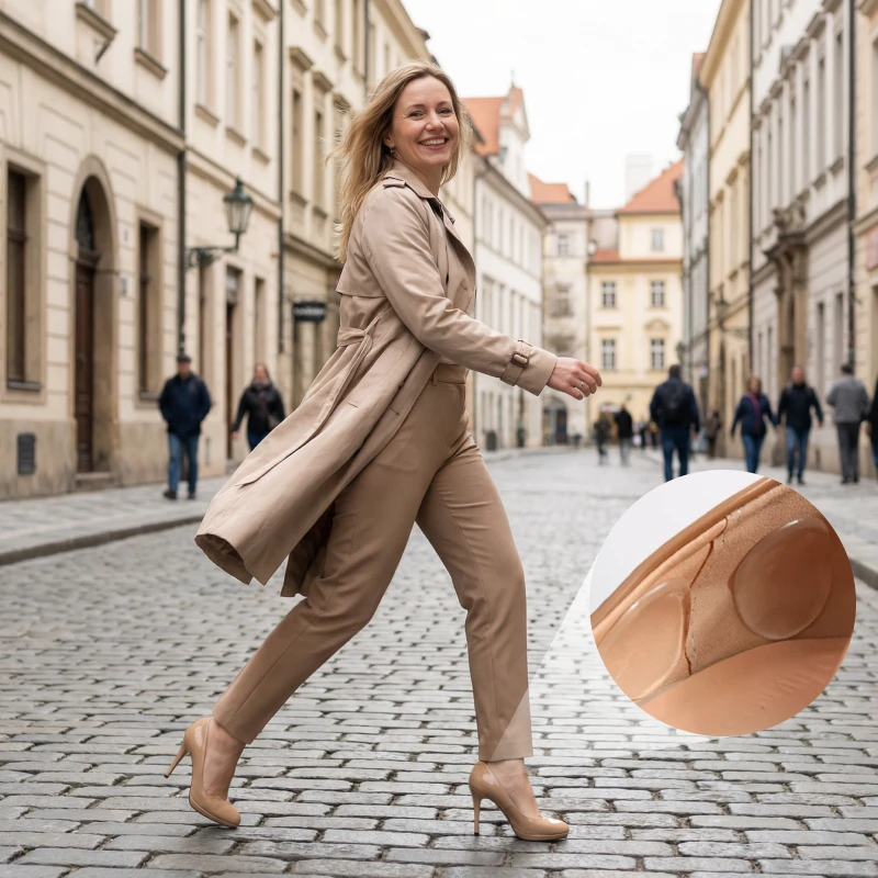 Usei salto a noite toda num casamento sem dor, graças a essas almofadas inteligentes. Nunca mais band-aids nos pés!