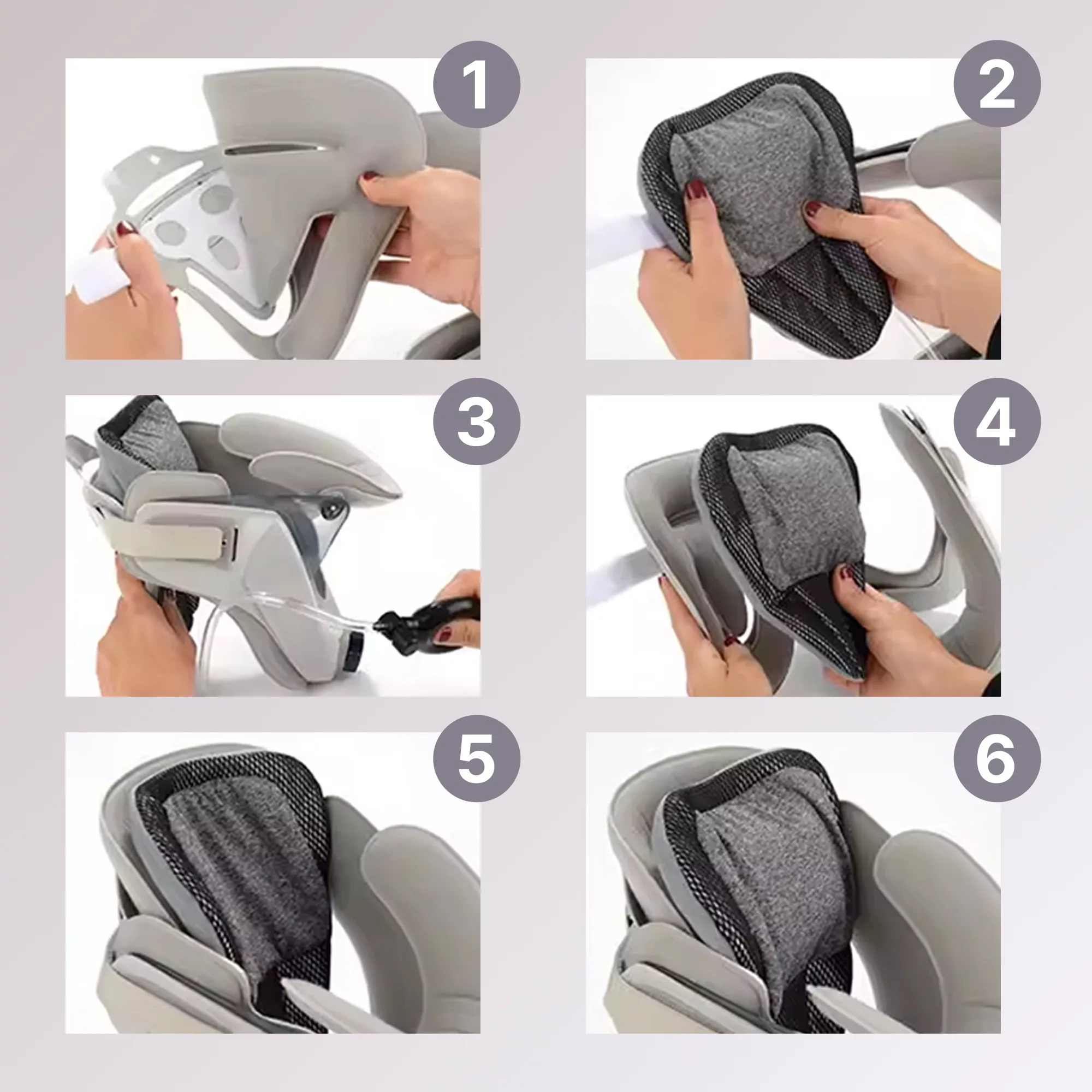 Este alongador de pescoço me salvou depois de longas horas no computador. Ele encaixa perfeitamente e apoia minha cabeça suavemente. Respirar continua confortável também!