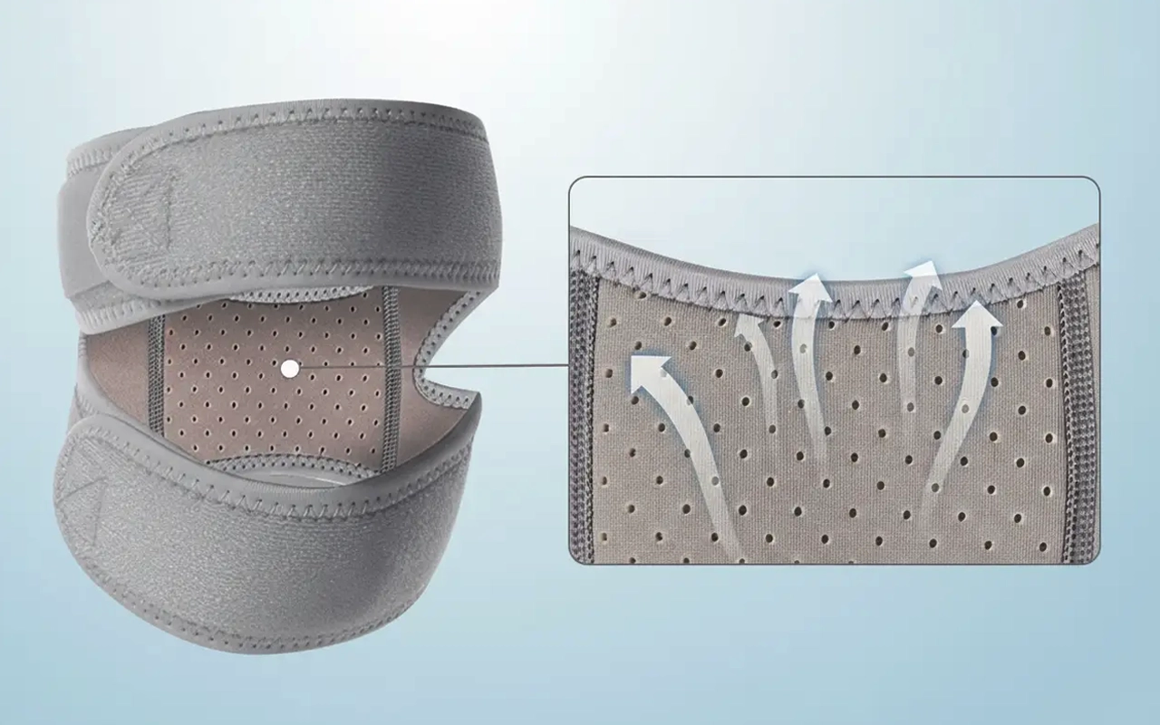 O tecido de malha 3D permite que sua pele respire, evitando o acúmulo de calor. O suor seca rapidamente, então seu joelho fica leve e fresco o dia todo.