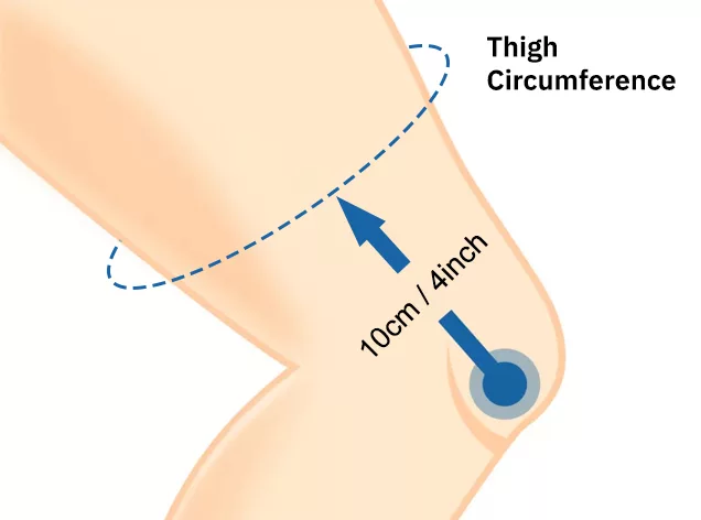 - 1. Dobre a perna em um ângulo de 30º e meça a circunferência da coxa 10 cm acima da patela.