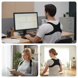 Comprei a alça de suporte depois de a minha esposa insistir no meu mau porte. Ajusta-se rápido, é leve, e agora até ela nota que estou a ficar mais direito.