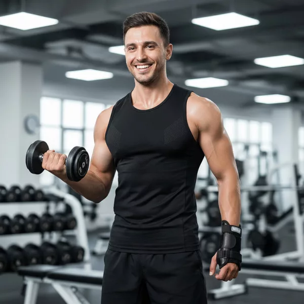 Eu jogo tênis e costumava me preocupar em torcer o pulso. Desde que comecei a usar essa tala, me sinto muito mais confiante ao balançar a raquete.