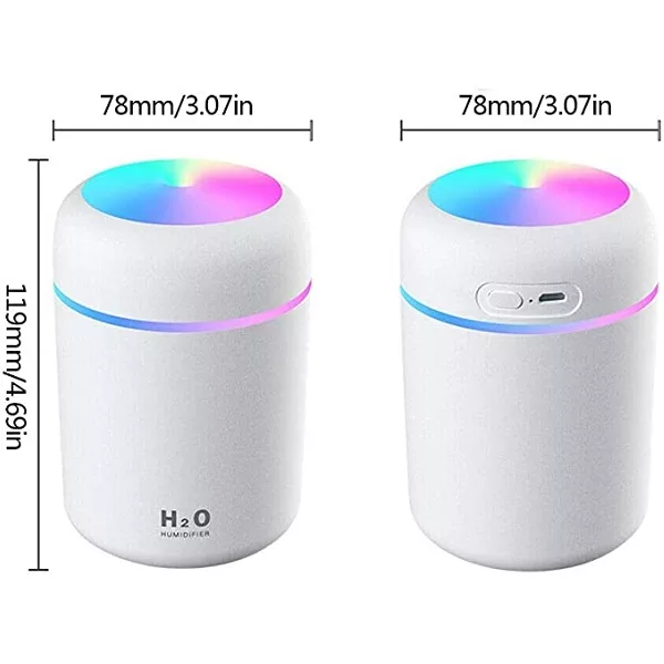 O humidificador vem em desenhos tri-coloridos simples e elegantes que são frios de ver e tem uma luz quente e romântica. O difusor produz névoa fresca enquanto remove maus odores e cheiros, adicionando um aroma muito agradável. O botão de toque sensível ajuda a mudar facilmente os modos de funcionamento do humidificador. Pode se beneficiar do modo de pulverização contínua ou intermitente, ajustando-o à sua preferência. O aparelho desliga-se automaticamente quando o nível de água está baixo e apresenta um desligamento automático de 4 horas para o modo de pulverização contínua e de 6 horas para o modo de pulverização intermitente. O seu desenho portátil e leve torna-o ideal para utilização no escritório, em casa ou no carro. Beneficie-se de hidratação contínua onde quer que vá.