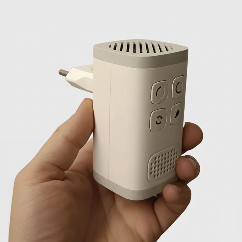 É pequeno mas poderoso! Só um toque de botão e o ambiente todo fica cheiroso. Nenhum cheiro estranho, mesmo com animais por perto.