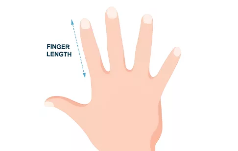 - 1. Use uma régua para medir a distância da base do dedo, onde ele encontra a palma, até a ponta.