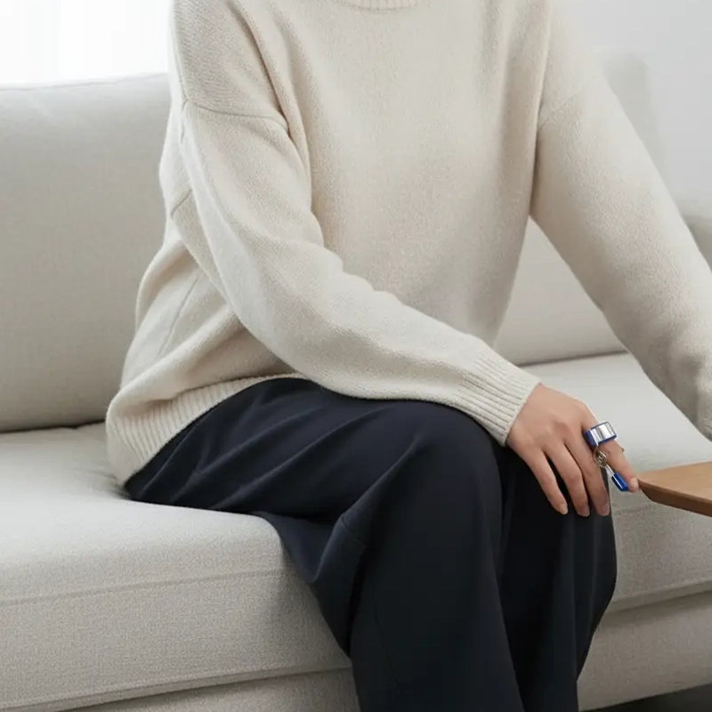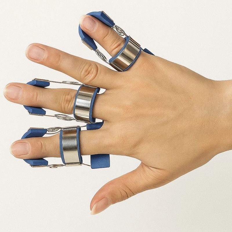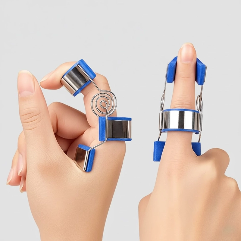 Eu digito o dia todo, e esta pequena órtese mantém meu dedo dolorido firme. É leve, fácil de moldar e não enrosca em roupas ou cabelo.