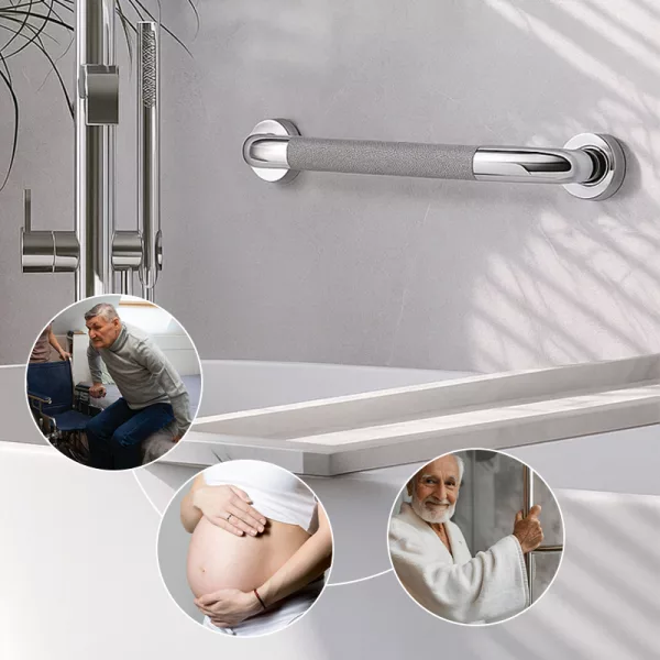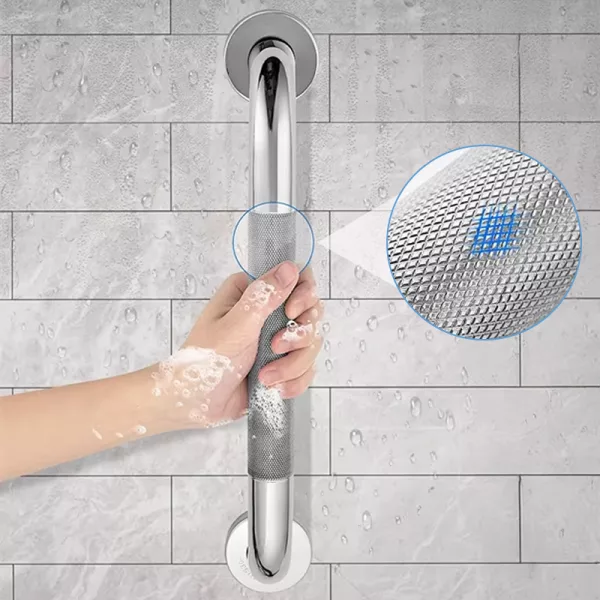 Uso a barra ao sair da banheira e ela nunca escorrega da minha mão. A parte antiderrapante realmente funciona bem.