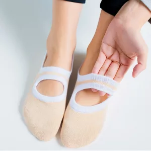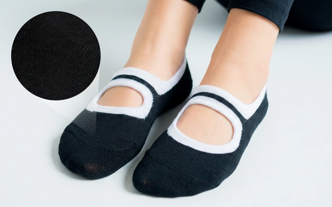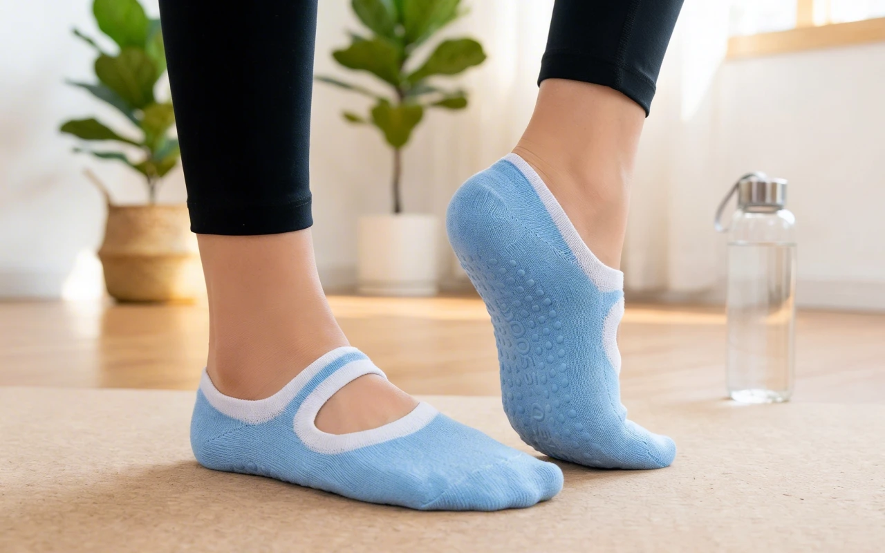 Estas meias de ioga me mantêm estável nas aulas de ioga quente. O antiderrapante agarra bem em pisos suados, e o algodão macio ainda parece delicado depois de uma hora.