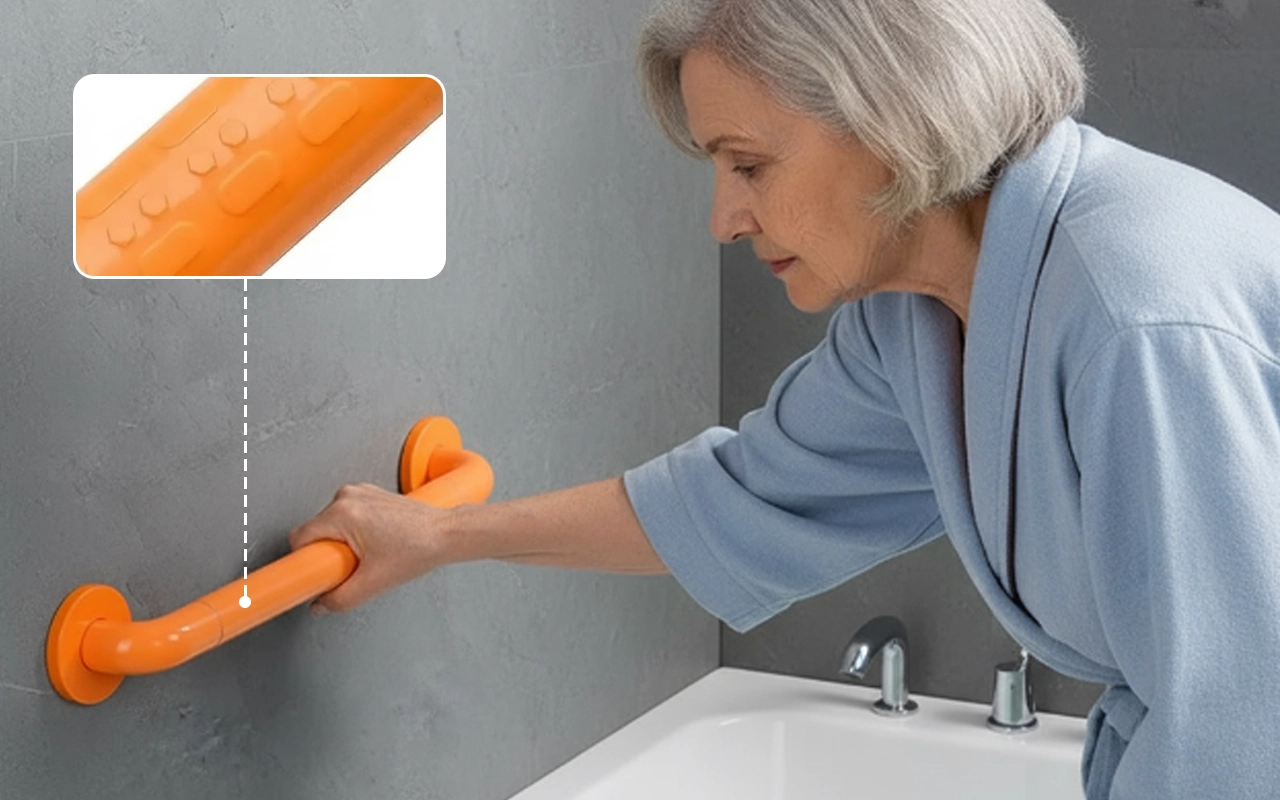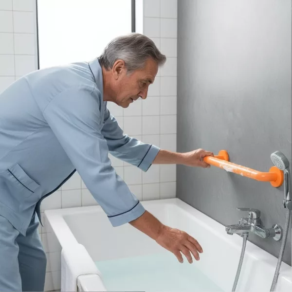 Instalei este corrimão para o meu pai no mês passado. Ele se sente seguro ao entrar e sair do chuveiro agora. Não preciso mais me preocupar com escorregões.