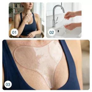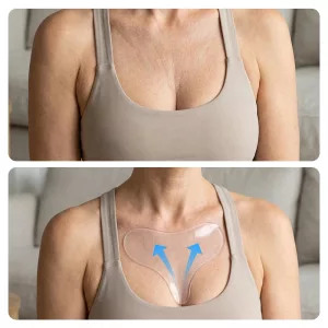 Já testei muitos truques, mas este adesivo dá os melhores resultados. A pele parece mais cheia, as linhas do peito menos visíveis e sempre é suave ao usar.