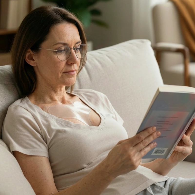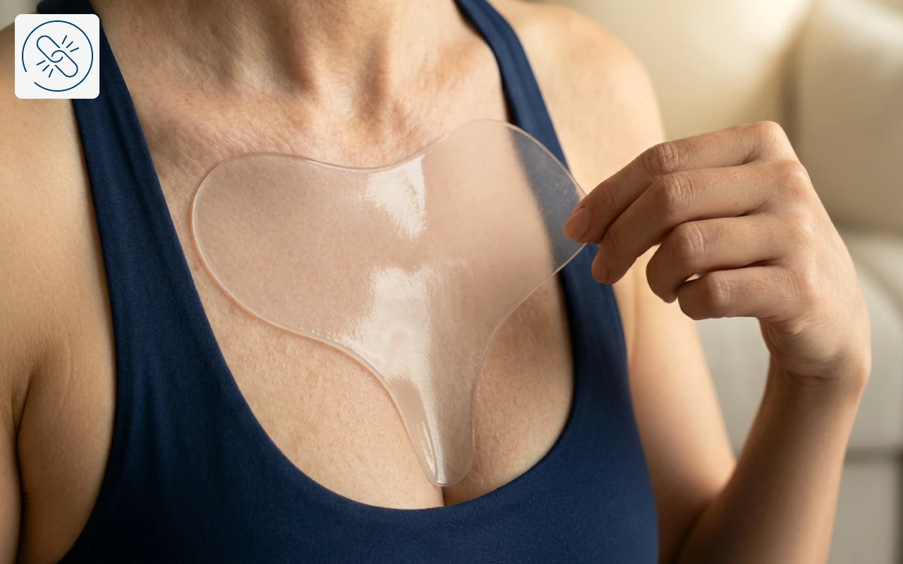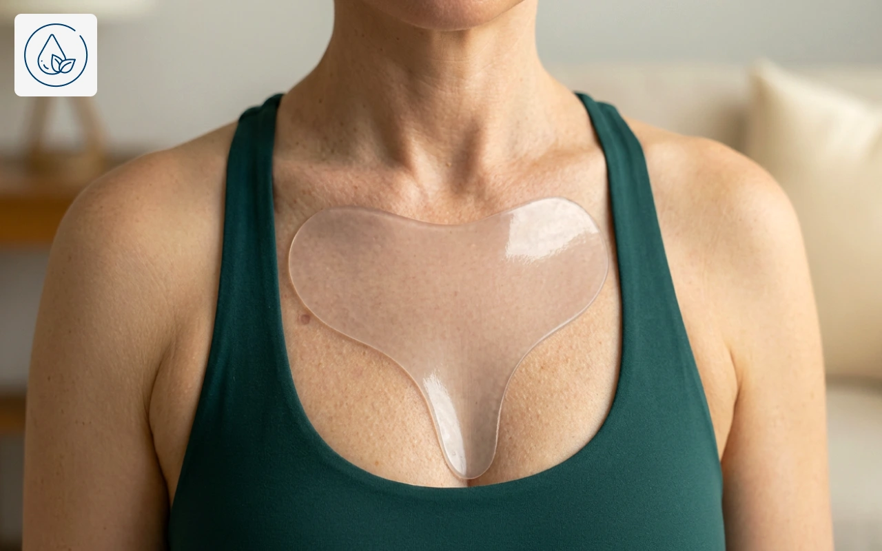 Já testei muitos truques, mas este adesivo dá os melhores resultados. A pele parece mais cheia, as linhas do peito menos visíveis e sempre é suave ao usar.