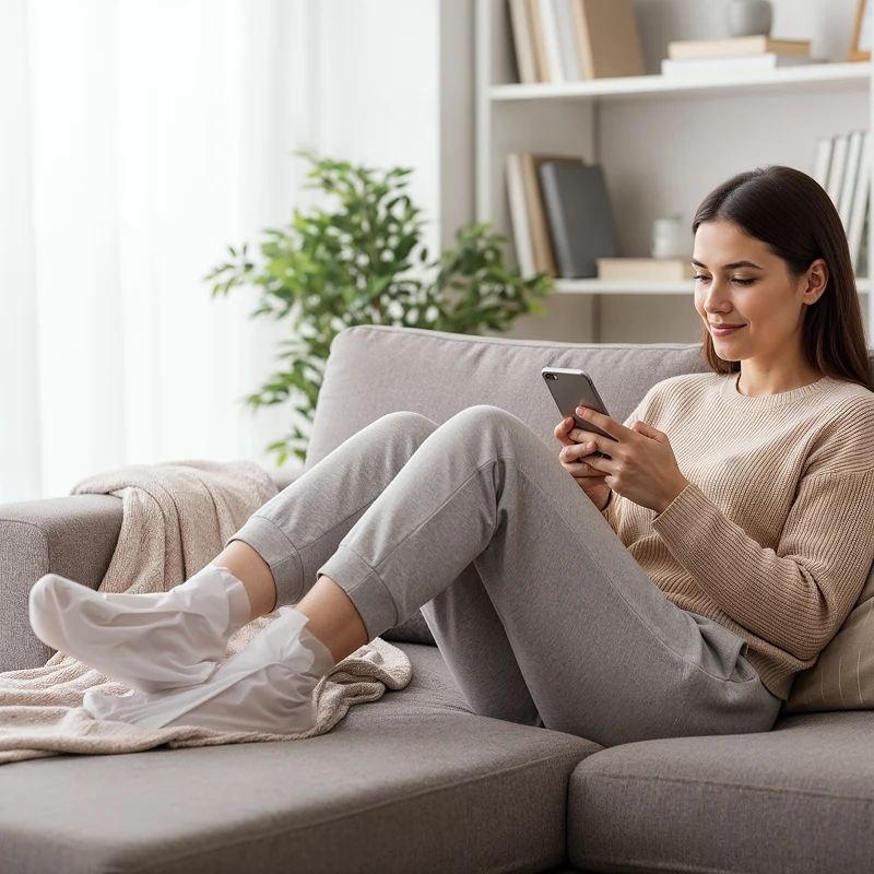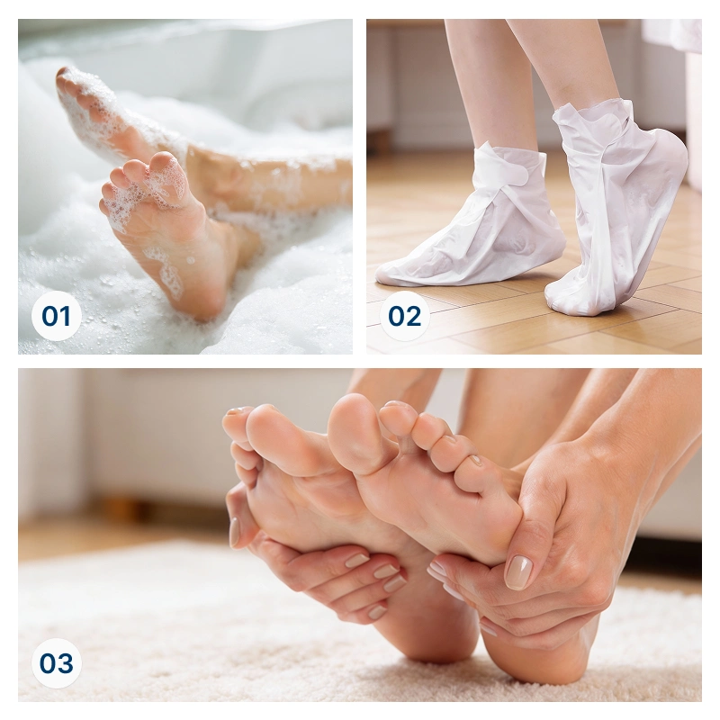 Calce as meias da máscara para pés Ortorex e continue as suas tarefas diárias facilmente. Não é necessário esfregar vigorosamente nem visitas ao salão para uma renovação suave em casa.