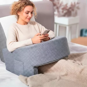 Comecei a usar este encosto para ler na cama e isso mudou completamente minha rotina. Nunca mais fiquei com dores nas costas, e os bolsos são perfeitos para o meu telefone.