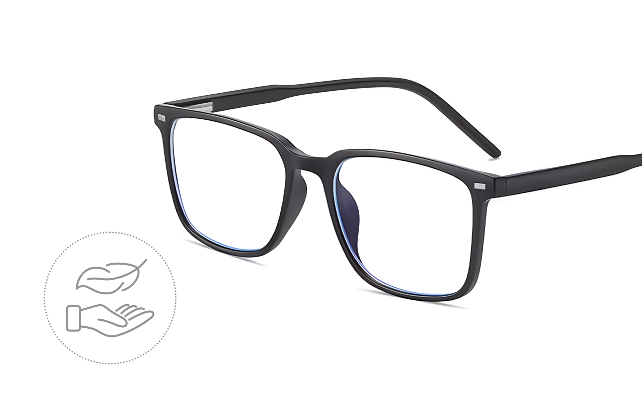 A armação é leve e não aperta ou pesa. Pode usá-los o dia todo sem marcas vermelhas ou escorregar no nariz.