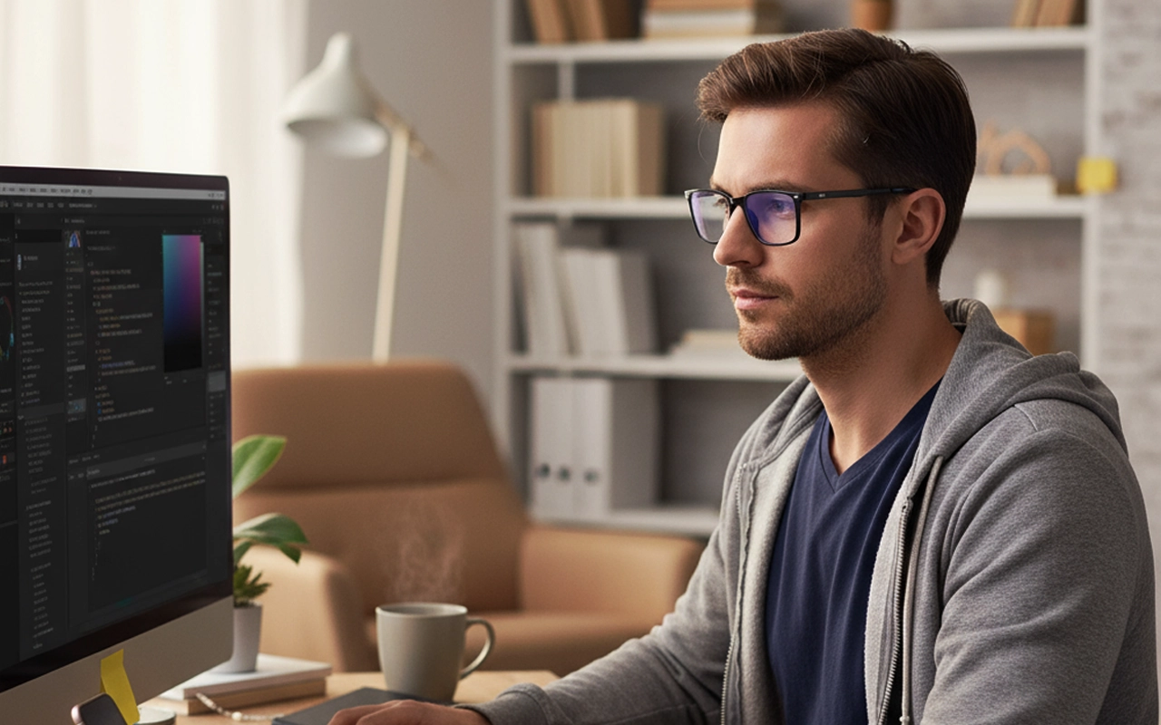 Trabalho até tarde editando fotos, e esses óculos realmente ajudam com telas brilhantes. Meus olhos não ficam mais exaustos e ainda são bonitos!