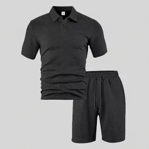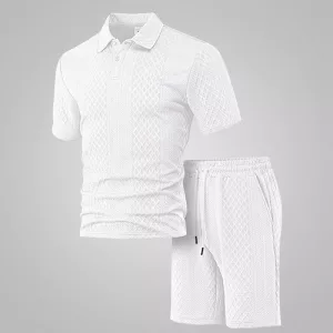 Aproveite os dias quentes sentindo-se fresco e confiante a cada momento. O conjunto Ortorex utiliza uma malha leve que é suave e arejada. Mantém seu conforto ao ar livre, esteja você relaxando ou em movimento. O visual deste conjunto adiciona um toque sofisticado, fazendo você se destacar com facilidade.