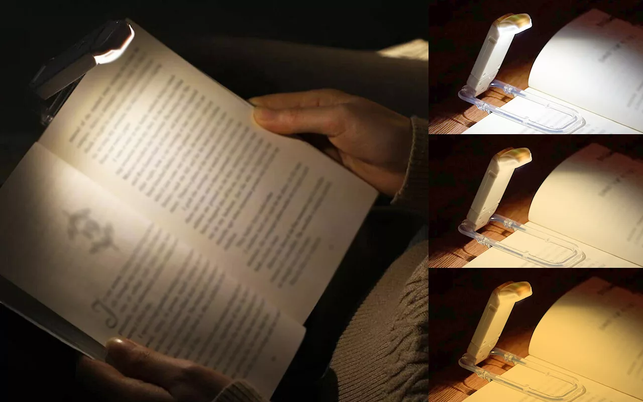 Luminária pequena muito boa. Estava preocupado que fosse cair dos livros, mas ela fica firme. Os diferentes níveis de brilho são úteis para qualquer momento.