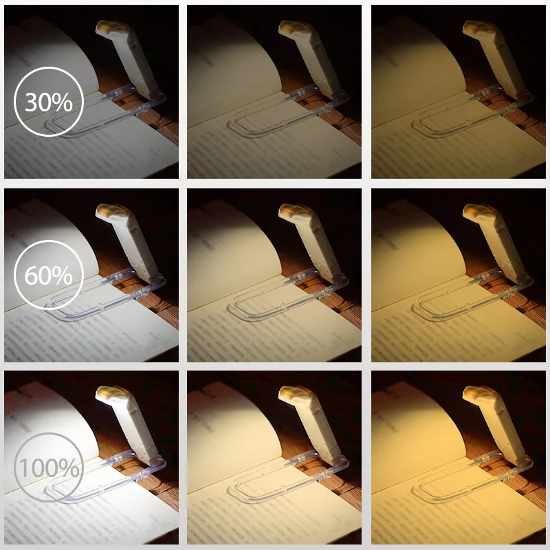 Luminária pequena muito boa. Estava preocupado que fosse cair dos livros, mas ela fica firme. Os diferentes níveis de brilho são úteis para qualquer momento.