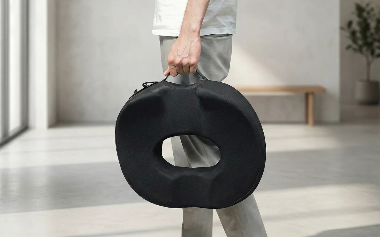 Alça de transporte fácil e gancho permitem que você leve conforto para onde for. Use a almofada Ortorex em casa, no escritório ou durante viagens.