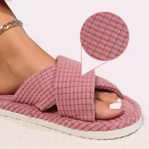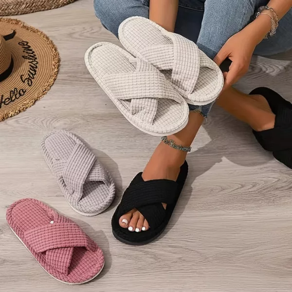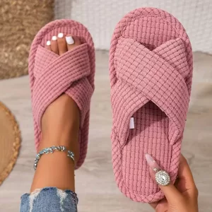 As tiras cruzadas mantêm seus pés estáveis enquanto você se move. Solas antiderrapantes ajudam a prevenir acidentes indesejados em qualquer cômodo.