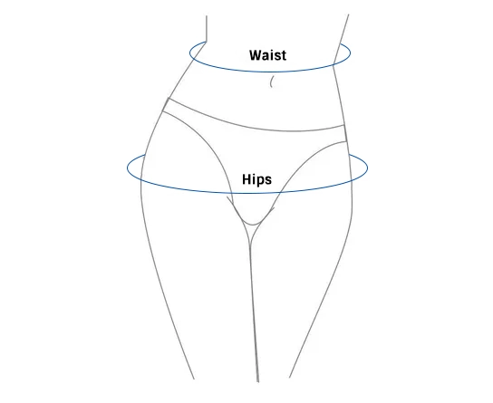 - 2. Enrole a fita métrica em volta da parte mais fina da cintura e da parte mais larga do quadril.