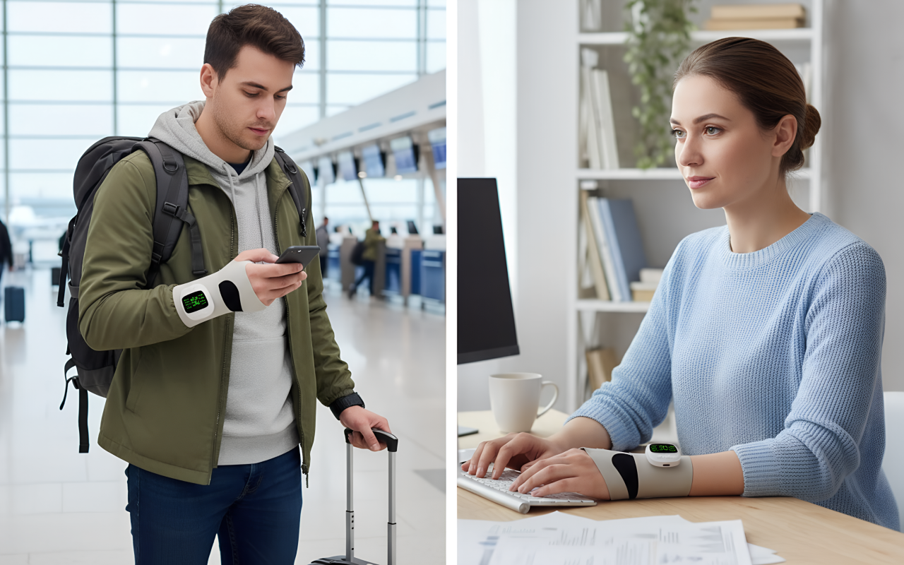 Movimente-se facilmente, sem fios ou tomadas, onde quer que você vá. Use o Ortorex durante o trabalho, descanso ou em viagens.