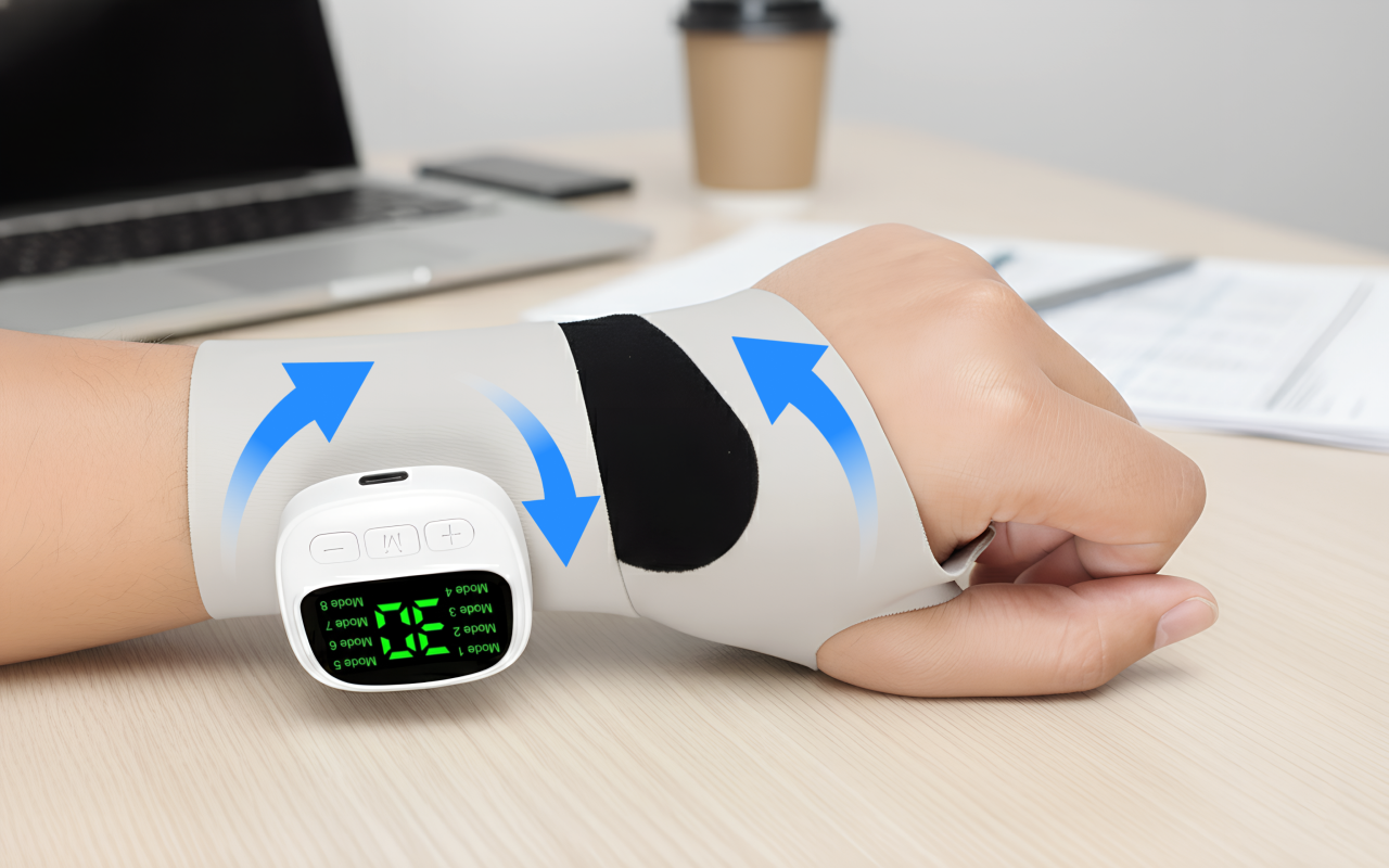 Sinta o suporte suave exatamente onde a tensão se acumula rapidamente. Este massageador reduz dores causadas por esforço repetitivo, mantendo as mãos leves.