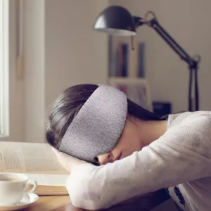 Esta máscara parece um cobertor macio para meus olhos. Agora esqueço dos postes de luz na rua. O sono está muito melhor.