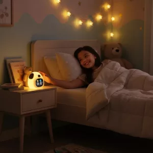As crianças aprendem rotinas saudáveis com facilidade usando o despertador Ortorex. Luzes coloridas tornam claros os momentos de dormir e de acordar para todos. Sons suaves ajudam as crianças a se sentirem calmas enquanto adormecem. Cada funcionalidade contribui para noites tranquilas e um despertar confiante.