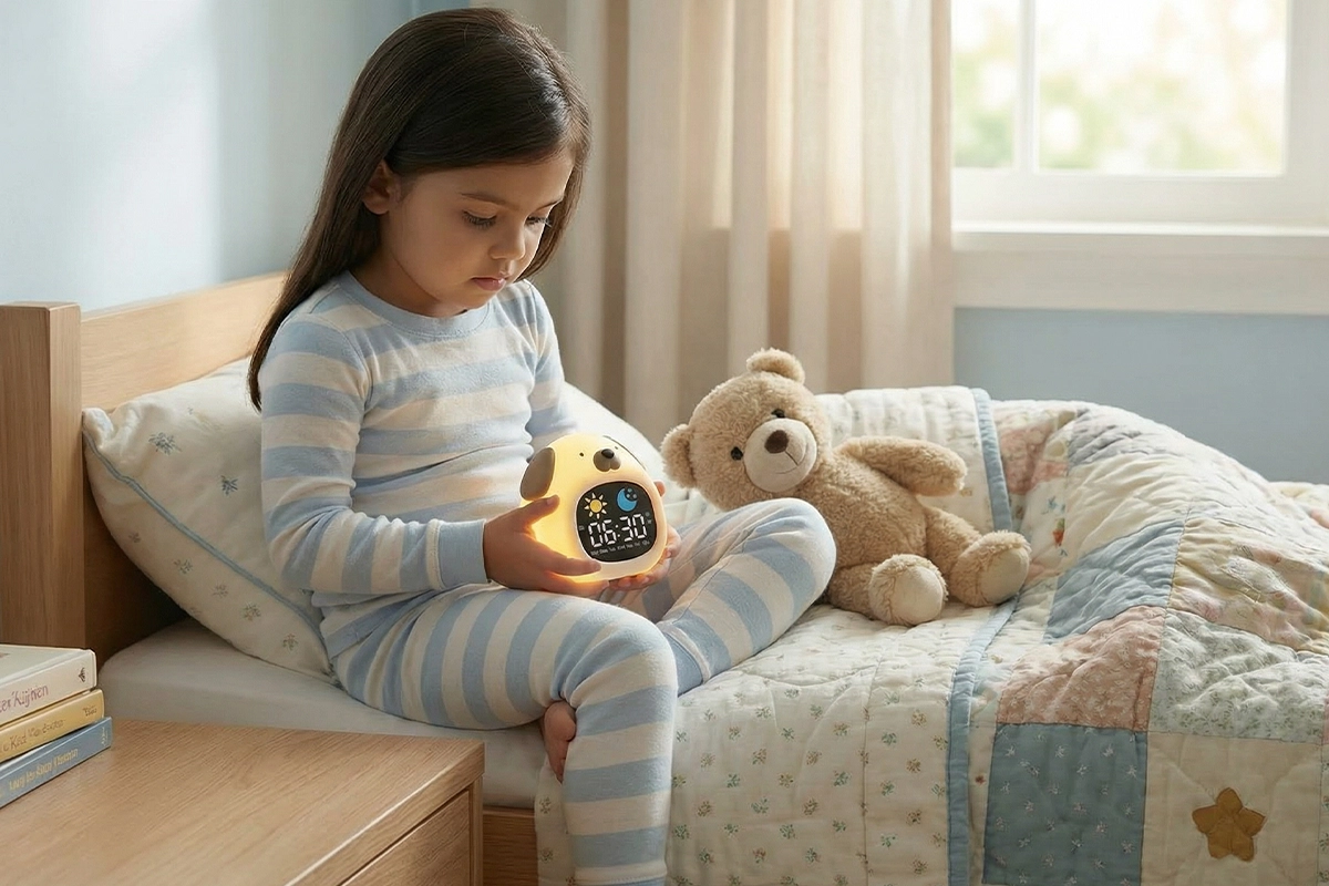 As crianças aprendem rotinas saudáveis com facilidade usando o despertador Ortorex. Luzes coloridas tornam claros os momentos de dormir e de acordar para todos. Sons suaves ajudam as crianças a se sentirem calmas enquanto adormecem. Cada funcionalidade contribui para noites tranquilas e um despertar confiante.