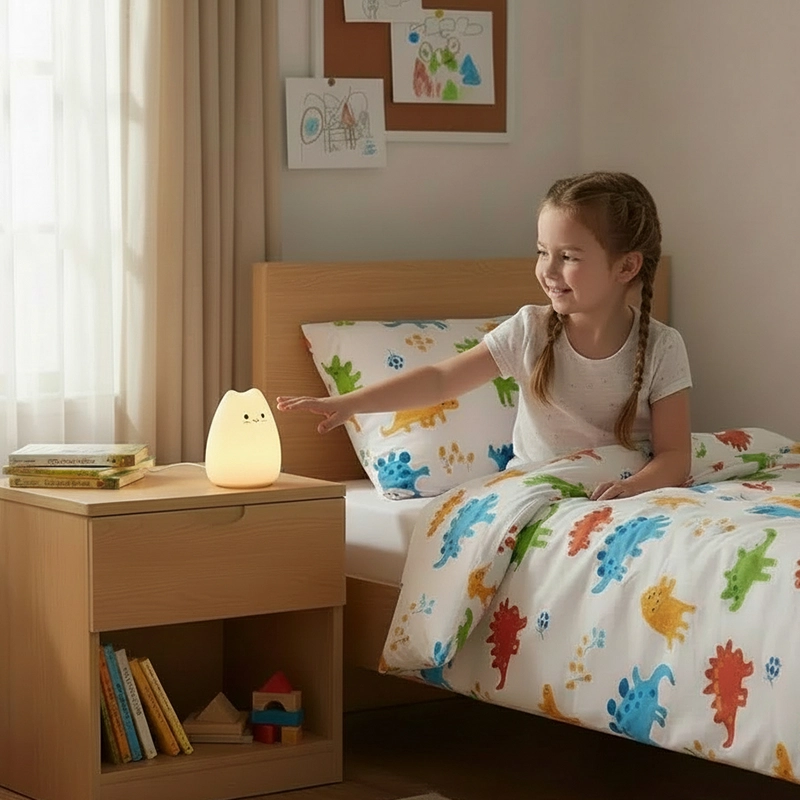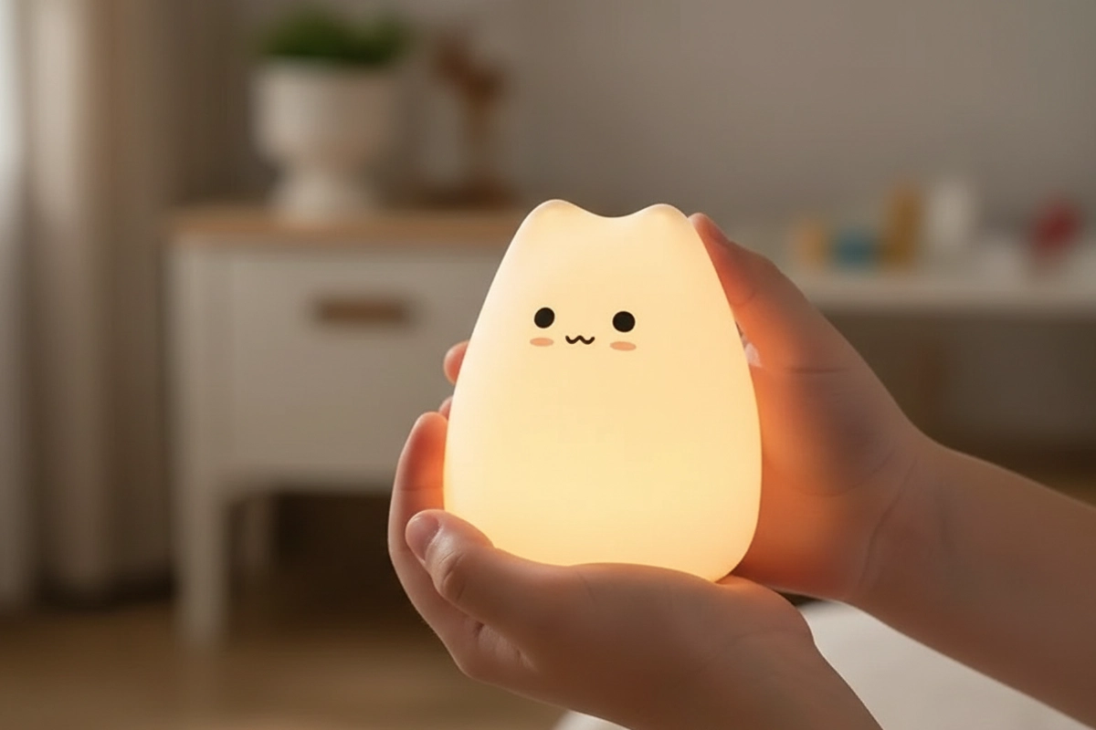 O silicone é tão macio que até minha filha pequena consegue segurar. Não tem cantos duros, e a luz fraca deixa o quarto dela aconchegante a noite toda.