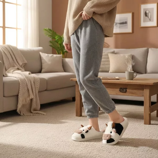 Pantufas confortáveis de vaca são ótimas para ficar em casa. Minha esposa e eu combinamos usando elas, é muito divertido! O antiderrapante funciona bem no nosso piso de madeira.
