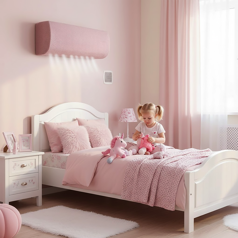 Adoro como a capa do ar-condicionado fica no meu quarto. É estilosa e mantém a poeira longe o ano todo. Super fácil de limpar e encaixa perfeitamente.