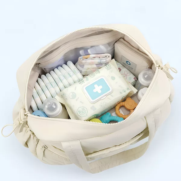 Nunca mais fico procurando brinquedos pequenos ou cremes! Esta bolsa deixa tudo organizado e simples. Também é super fácil de limpar se algo derramar.