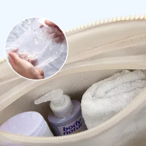 Itens molhados não estragam outros pertences dentro da bolsa. O forro especial bloqueia vazamentos, mantendo seus itens perfeitamente secos.