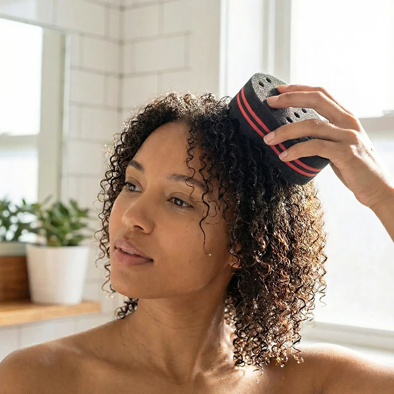 Esta esponja me dá cachos em espiral legais e não deixa meu couro cabeludo coçando. Uso até quando estou com pressa e ainda fico bem.